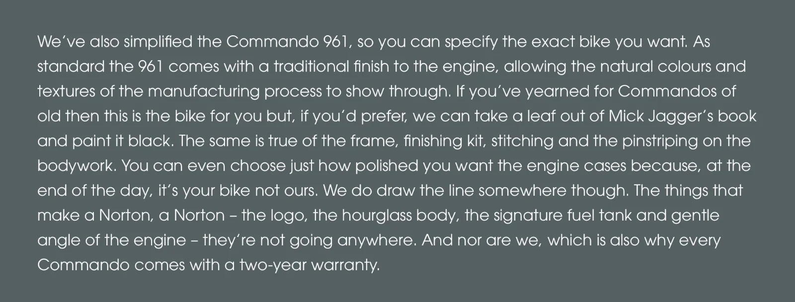 Agreed, should have had flat bars. Think they’ve tried to trade on Norton heritage with the Cafe Racer tag, when it appears the Cafe Racer genre may be waning somewhat.