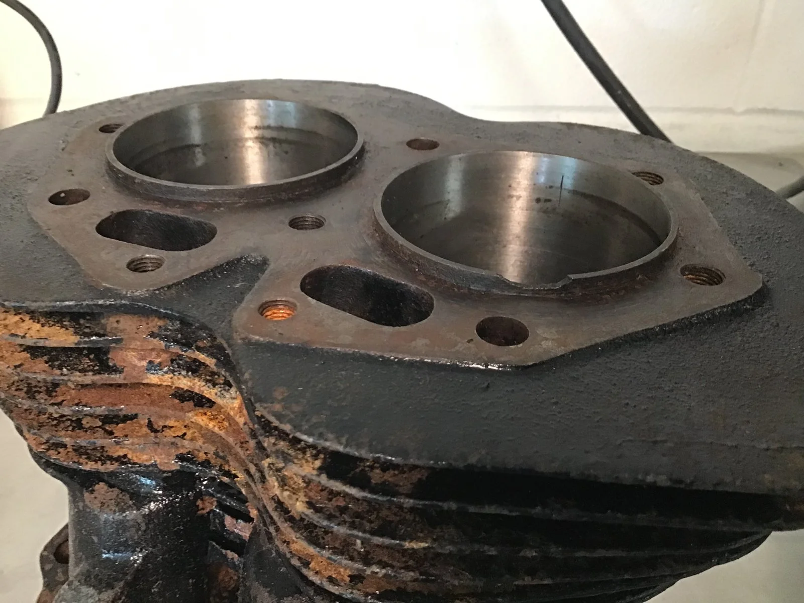 Small chip in the top spigot of one cylinder. There is sill a bit standing above the surface - about the thickness of the head gasket hopefully. Looking for opinions on this - will it still seal ok ?