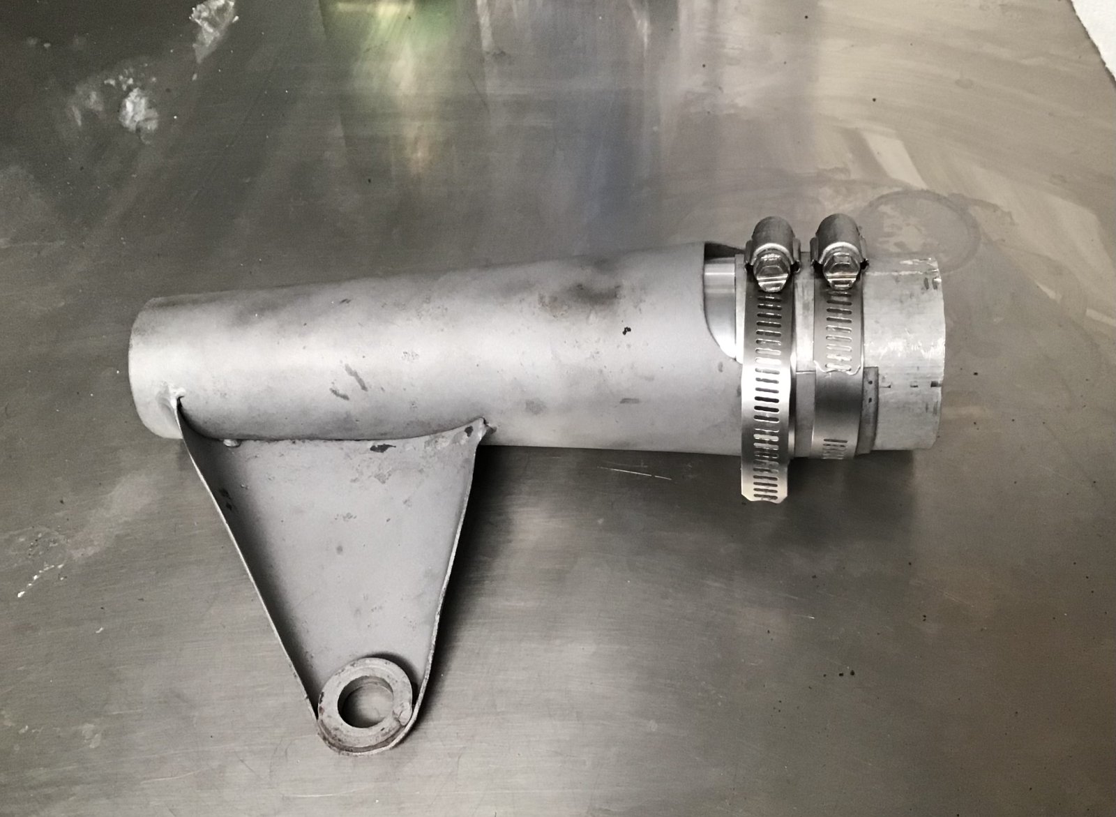 Chassis back from welder - head steady tab welded on and two holes I missed previously filled -