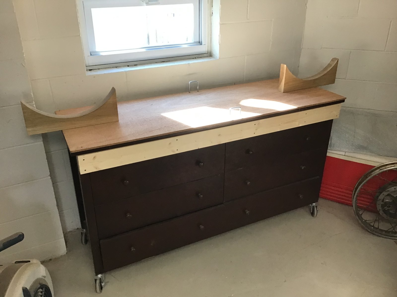 Lastly I’ve begun to prepare the curb find dresser to hold the Dommie as I will soon need the lift for de winterizing the 3 other bikes.