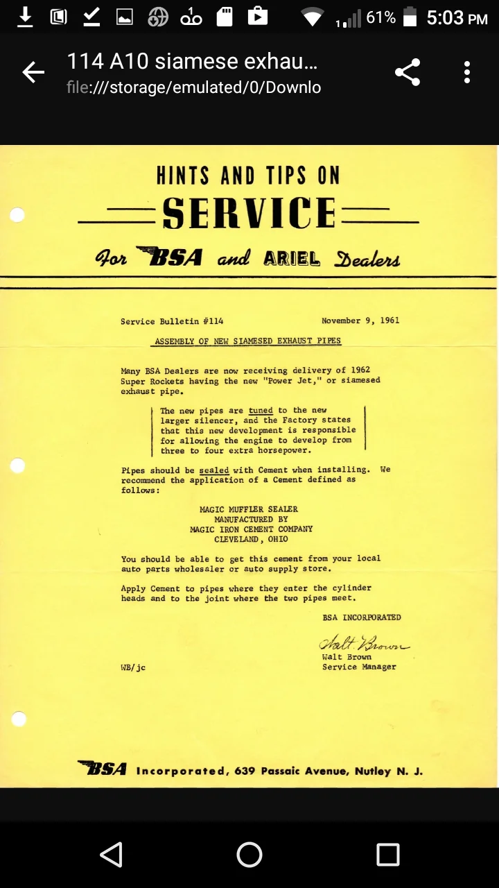 The memo also suggests using muffler cement to hold the short pipe in. I tried that but it still blew out on the road.