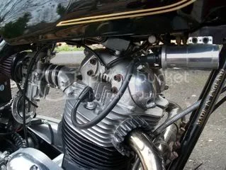 Engine is Standard Specs with a street cam. I took the starter off and the internals in the primary. Bagged and Tagged. Went to a Mk2 Amal single carb. Tossed the Boyer, and went back to points.