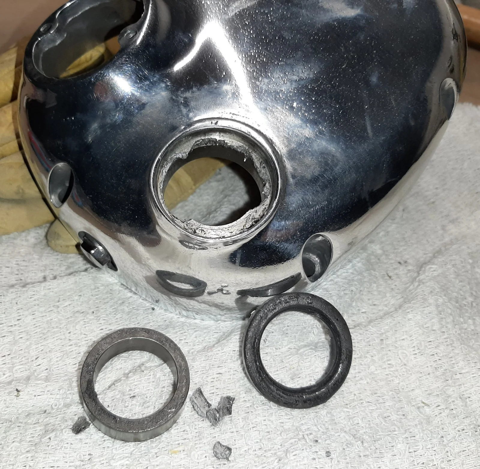 Larry, all you did was bust out part of the depth stop for the oil seal. If you are careful, you can still install a new seal, provided the bore for the kick-start bushing is OK. That said, there sure is a lot of porosity on the outer surface of that cover.
