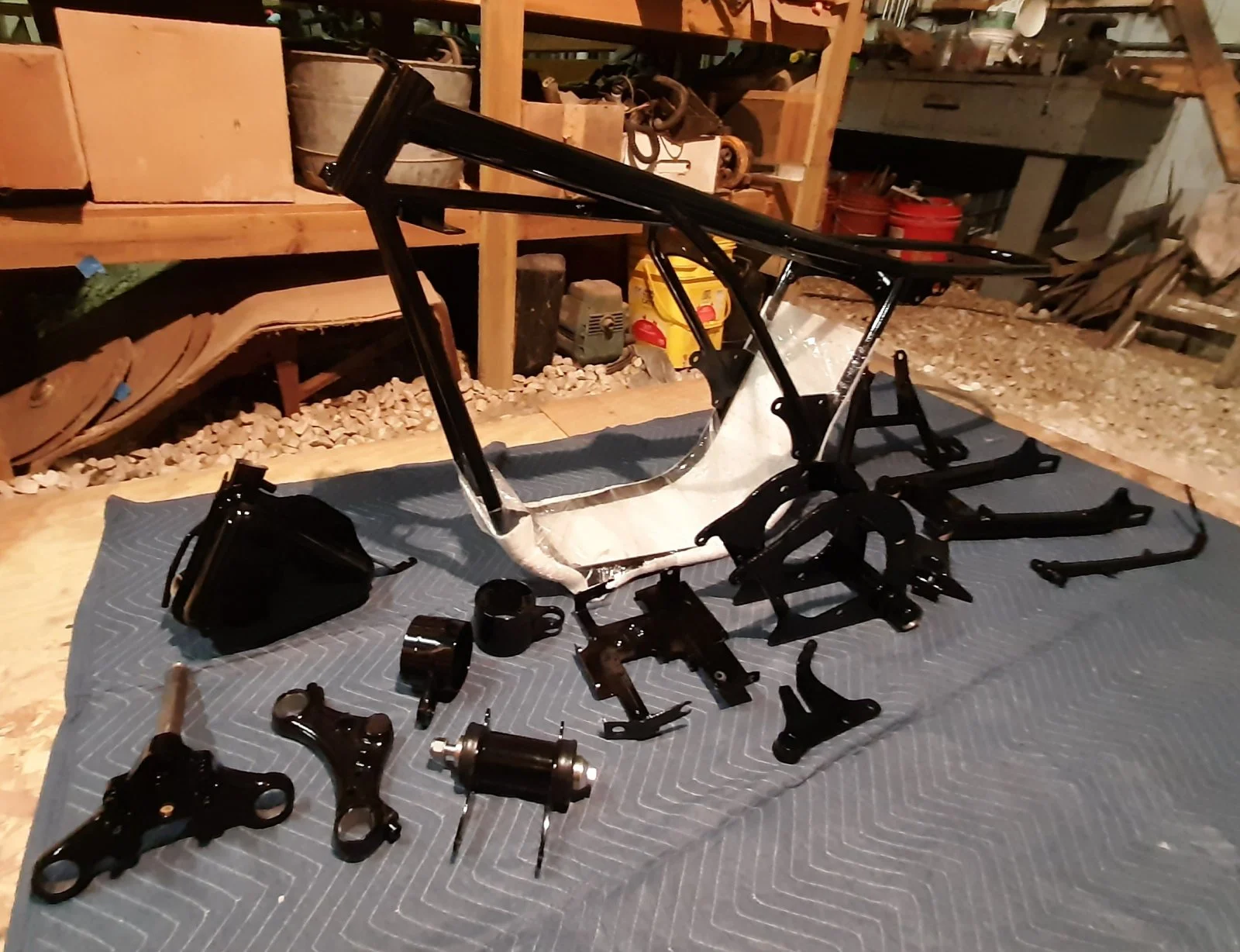 Got my frame and other items back from the powder coater. I'll have to get out the Dremel and do some grinding. No biggie. This stuff is BEAUTIFUL! I am very happy with the quality.