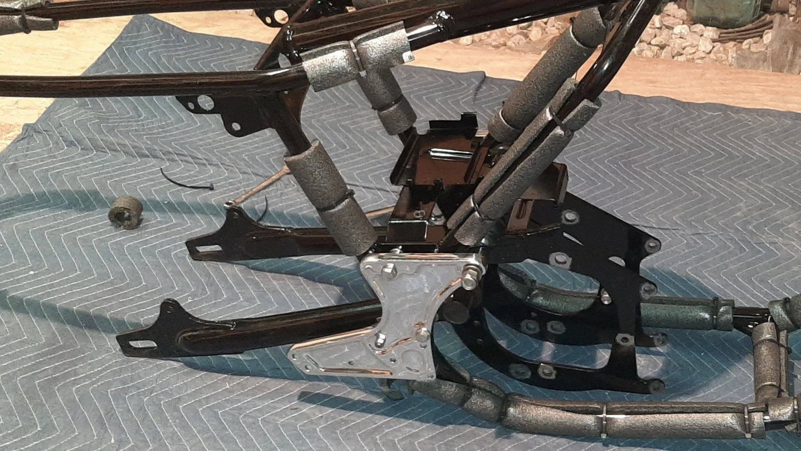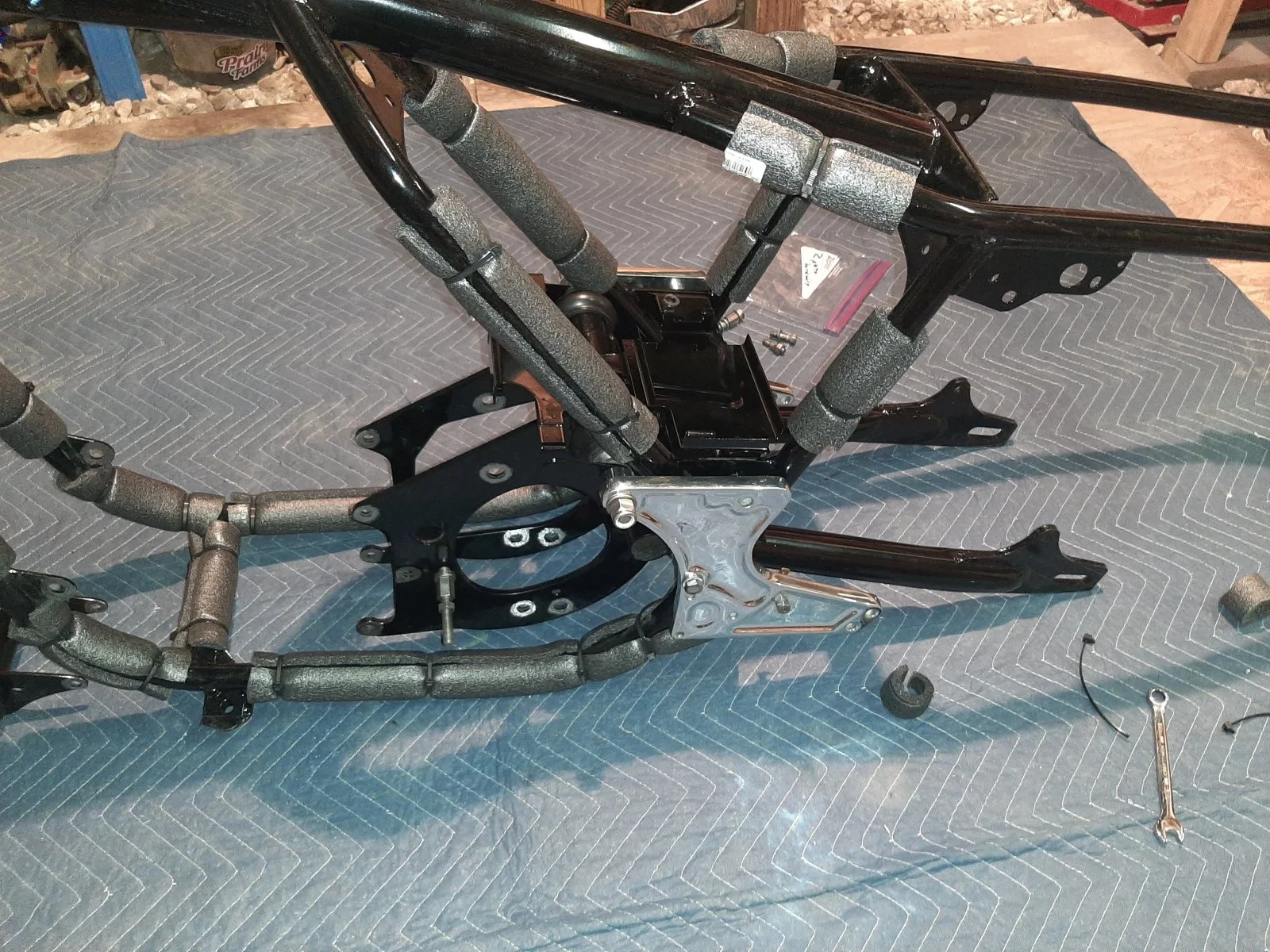Progress of sorts. Installing my swingarm and cradle I've found that I don't know which Z plate this little guide item goes on. If anyone has info or pics I would appreciate it.