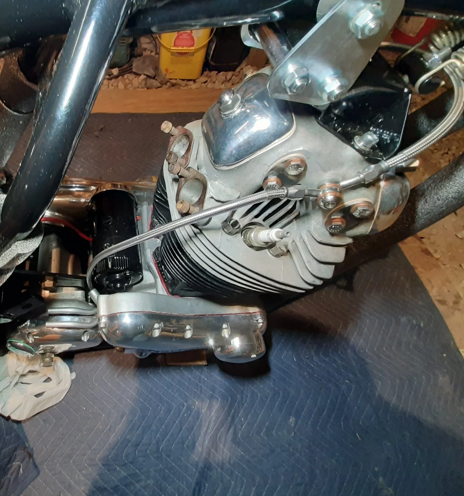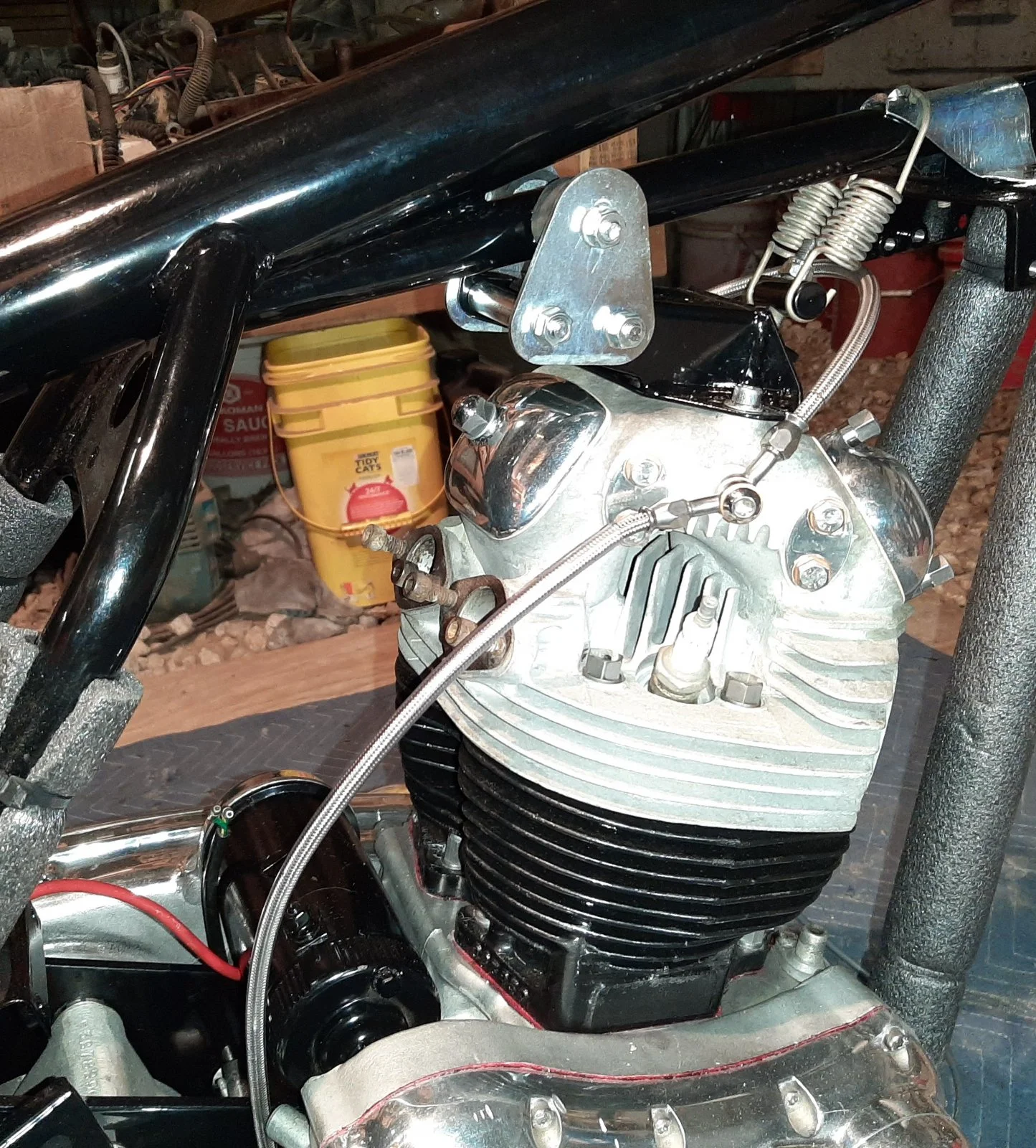 Installed my stainless rocker feed oil lines today. Not too sure on the routing though. Thoughts, comments or concerns? I'm going to run a single Mikuni if that would be a concern. Pics of your own would be cool. Thanks for the help and advice.