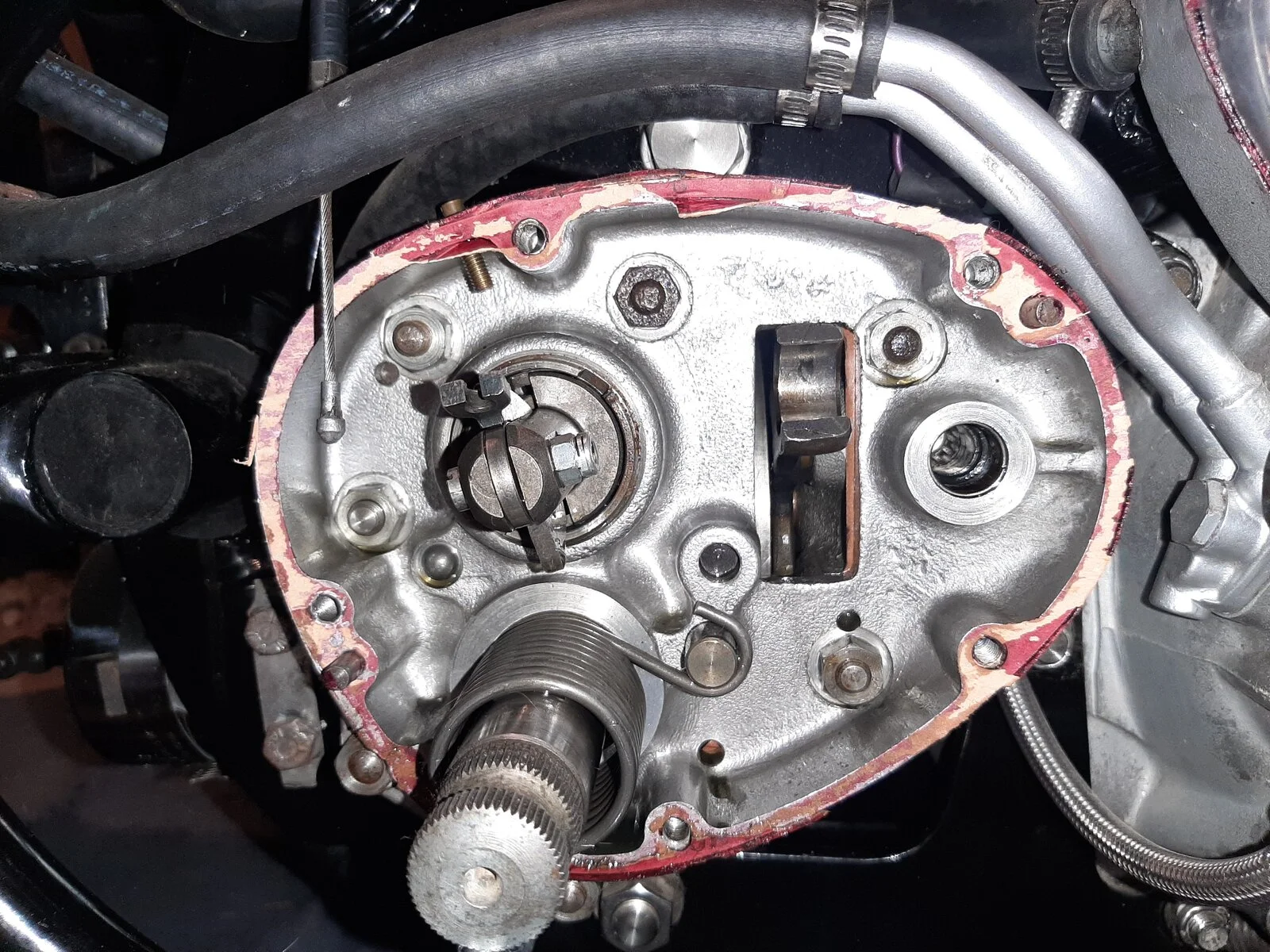 What I plan on doing is take the camplate assembly and reset the quadrant down an appropriate amount. Need to order inner and outer gaskets and a set of Whitworth wrenches. The nut/bolt that secures the quadrant/camplate assembly is an in-between size (not 1/2 or 7/16 not 11 or 12mm) so I assume it's Whitworth.