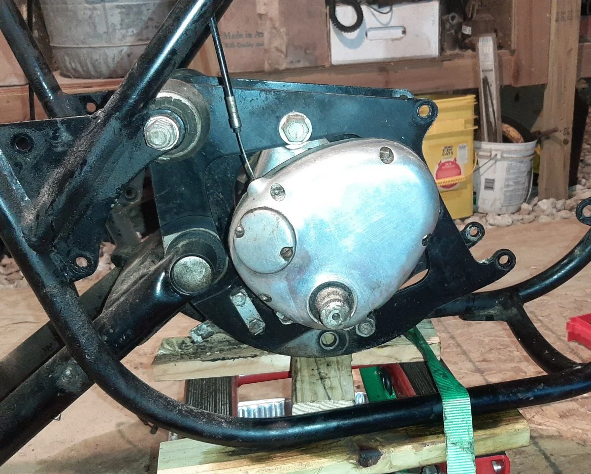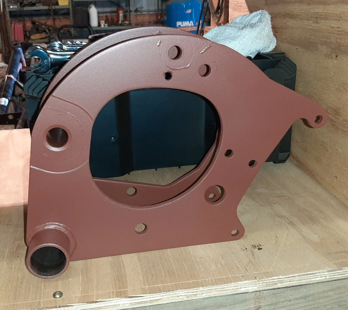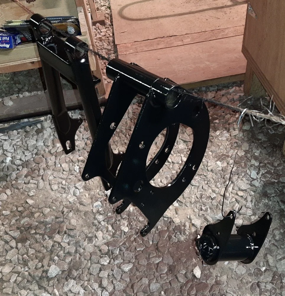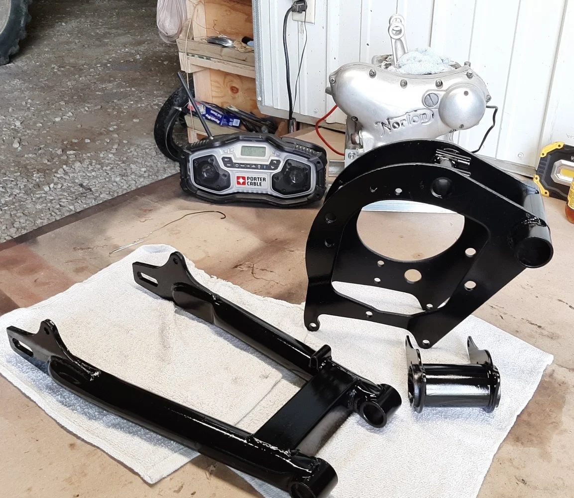 All of the paint and primer at the swingarm seal face area of the cradle needs to be removed to a patch slightly larger than the seal itself. Same goes for the bolt holes that mount the engine and transmission. Then, one thin layer of paint only. per Old Britts tech guide...