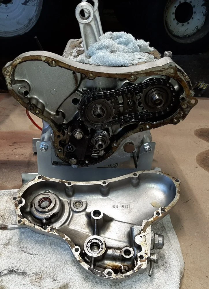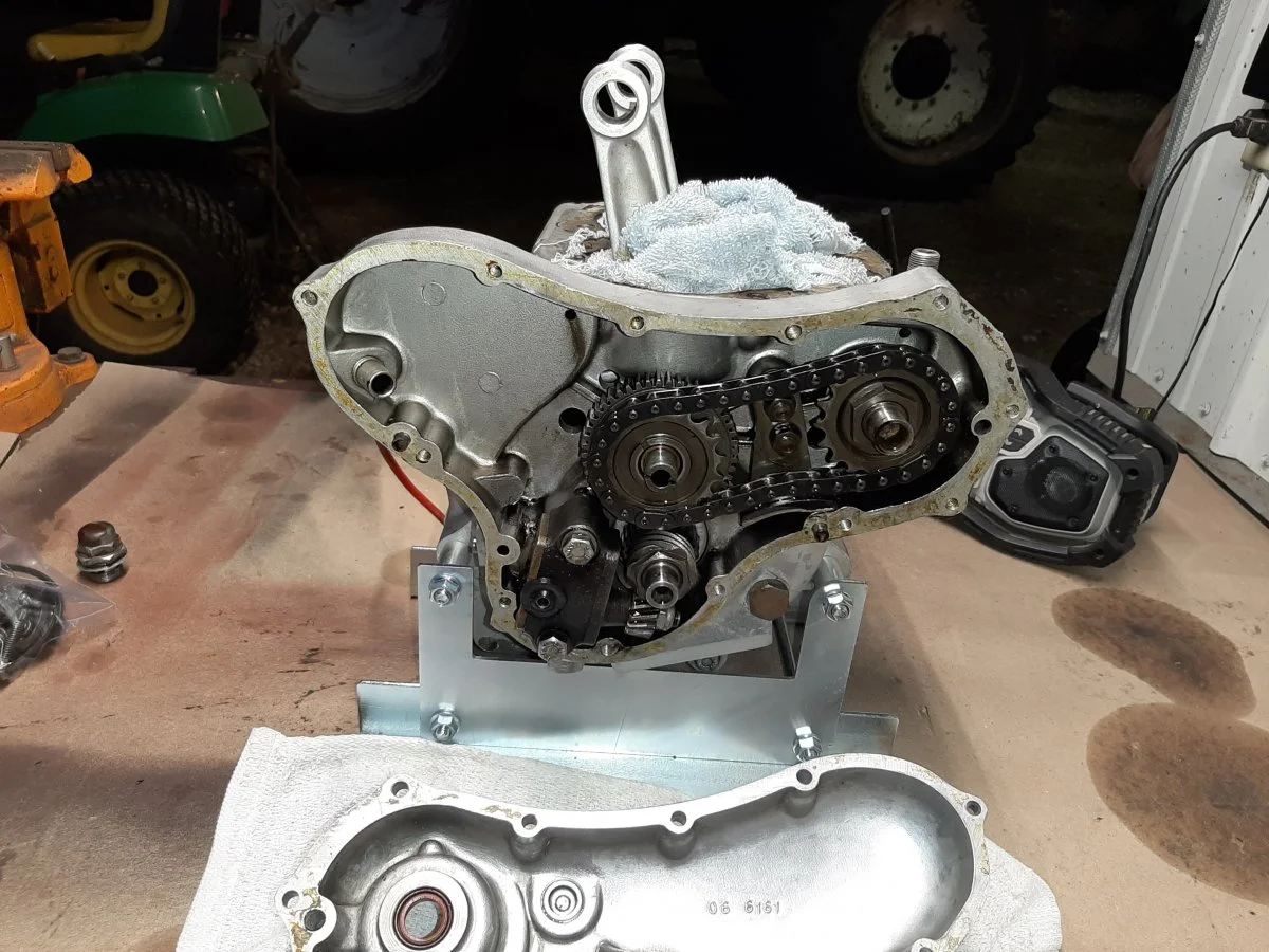 Its much nicer working on an engine on the bench in a decent engine stand.