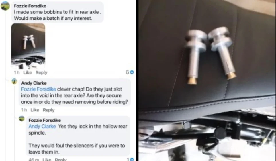 Fozzie from the FB site has engineered some bobbins to fit in the rear axle, to get around the lack of a bobbin boss on the Solihull swingarm. Sure he wouldn’t mind me ‘spreading the word’.