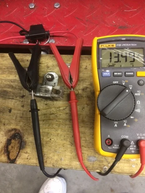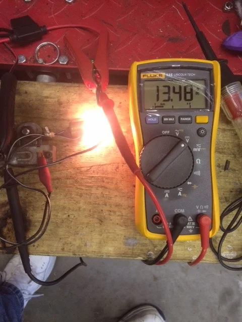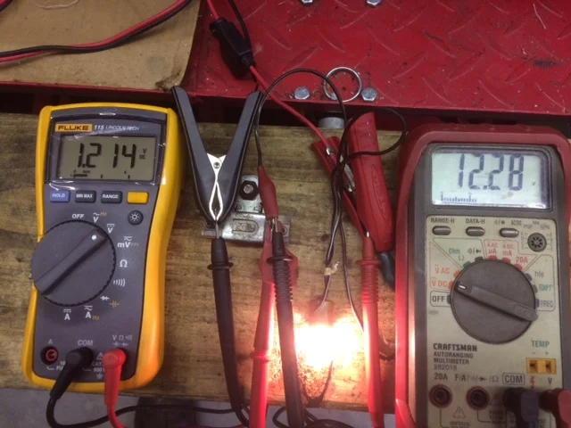 Move the negative probe over to the other (lamp) side of the ballast resistor and compare the volt reading with the first.