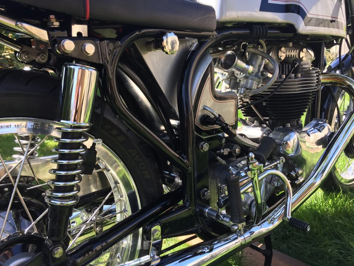 Cafe Racer look, we've built this as a Domiracer tribute bike - lots of period parts including Akront rims, Tomaselli clip-ons, John Tickle Yoke etc...