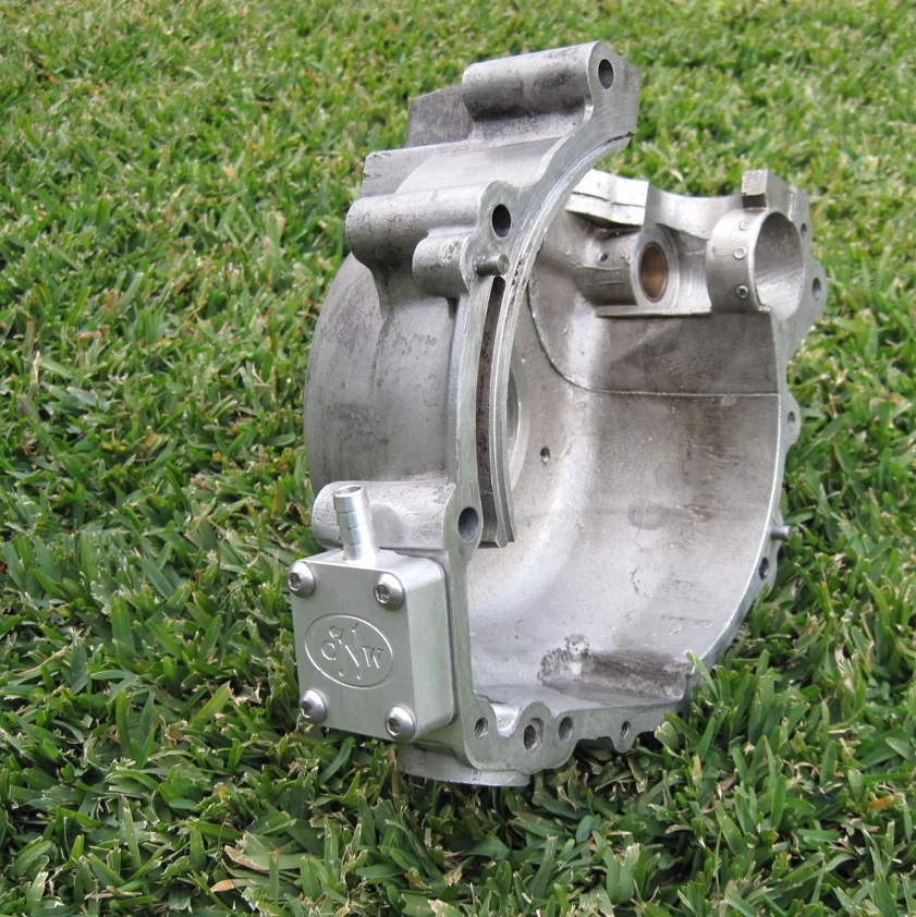 Drilled a 1/4" hole for drainage back into the crank case - bottom left side of the oil pump boss.