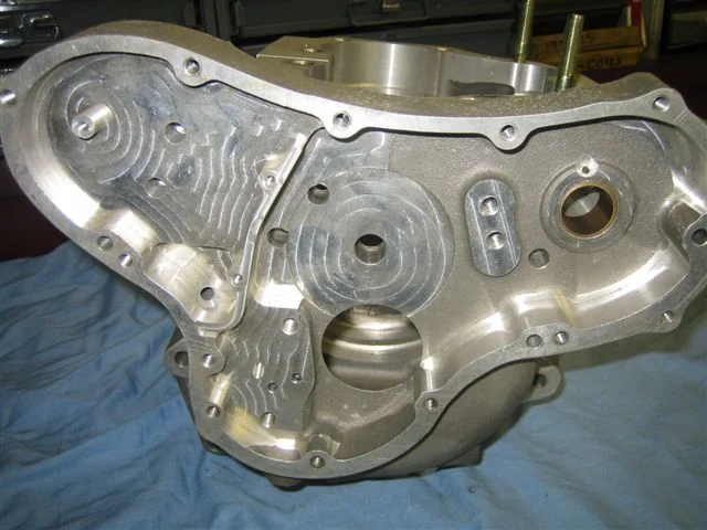 These pics are of a set of Kenny Dreer cases I have that are for a large main bearing Falicon crankshaft. Other than the larger bearing bores, they are identical to the other KD cases I have. I'll try to take some more detailed shots later, for comparison with the stock cases. I might have some other shots of the other KD cases, and if I find them, I'll post them too.