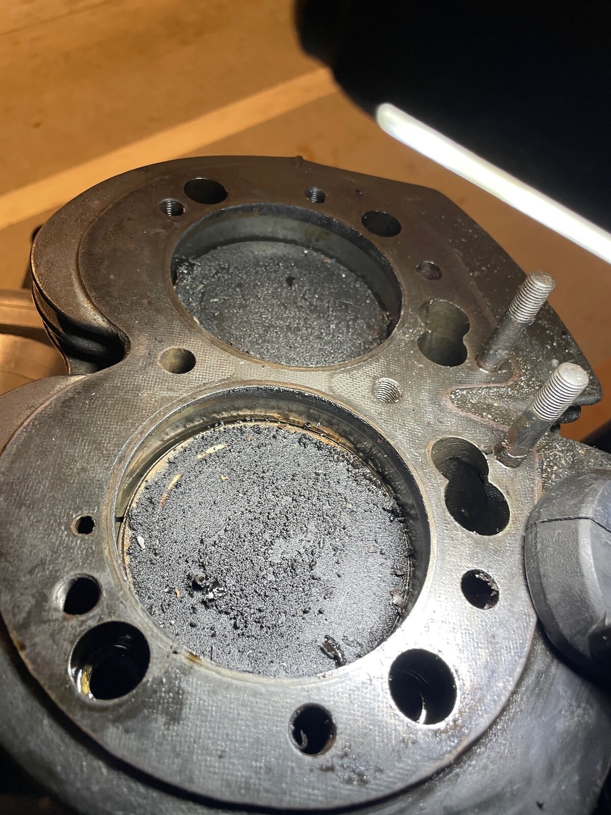 • 850 Head, cylinders and pistons are out. Can you comment on photos of piston tops and combustion chambers?