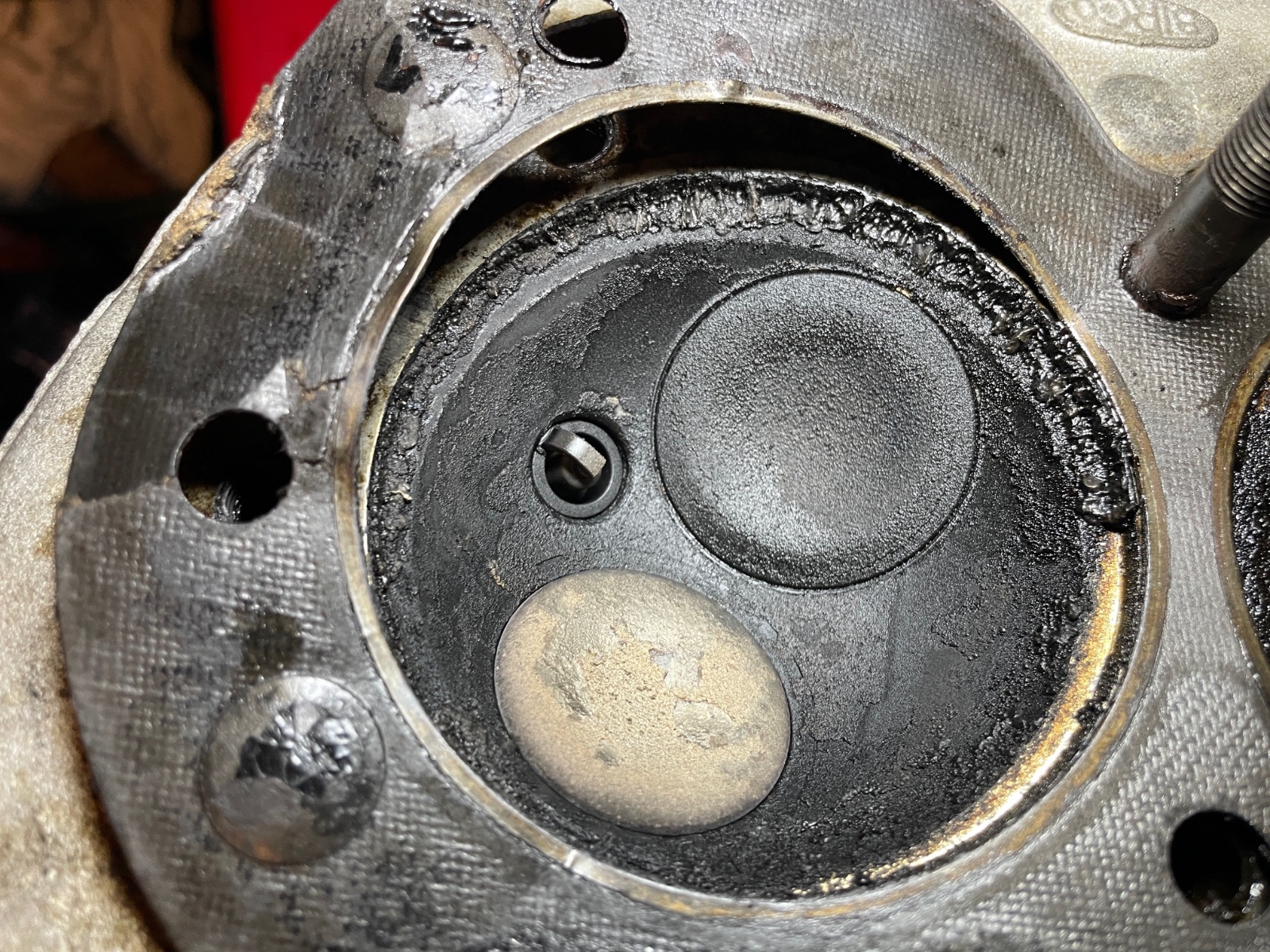 With the head level and the chambers up, pour in some gas and see if the valves leak. I'm suspicious of the valve in IMG_8814 that looks rusty under the carbon.