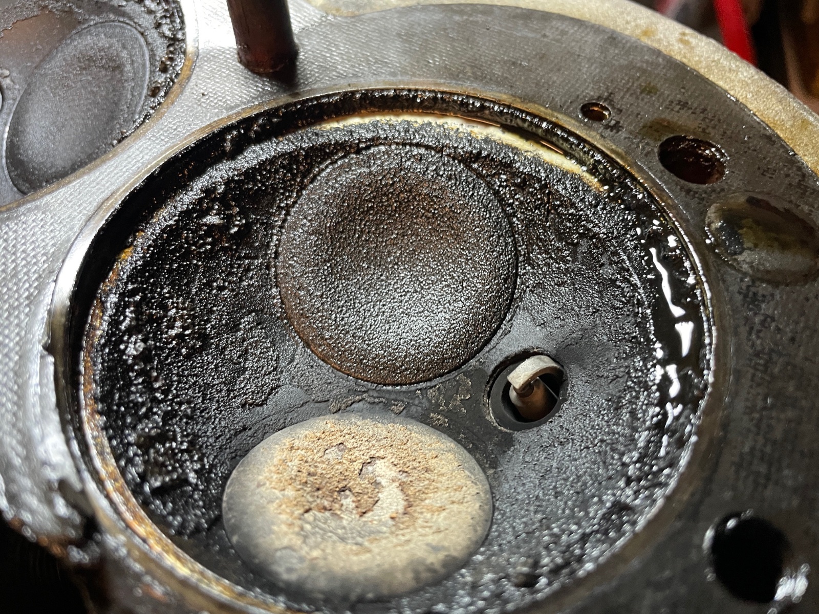 There is a ridge of carbon oil crud on the outer top diameter of the combustion chamber in IMG_8813.