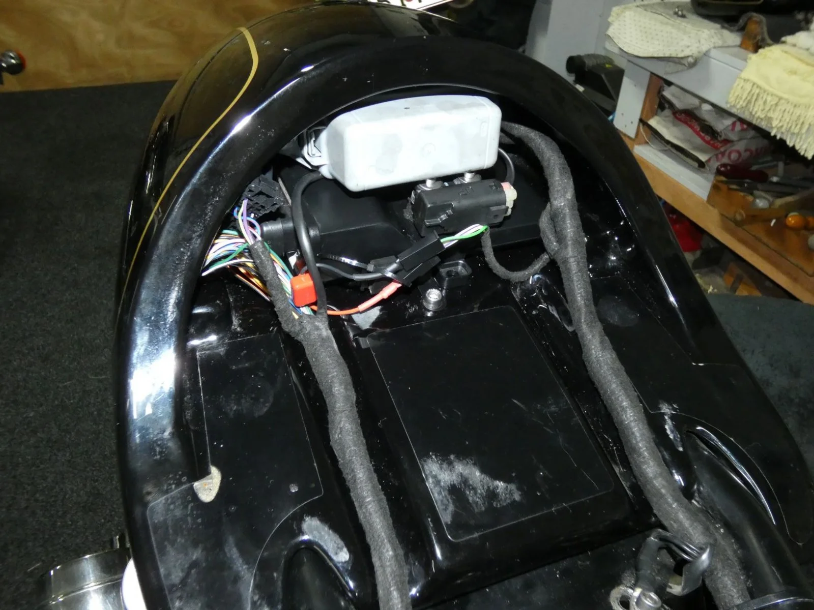 the hump has two spaces with a divider between. Front section just big enough for the ECU, fuse box, OBD connector and wiring, and rear section just the tail light.