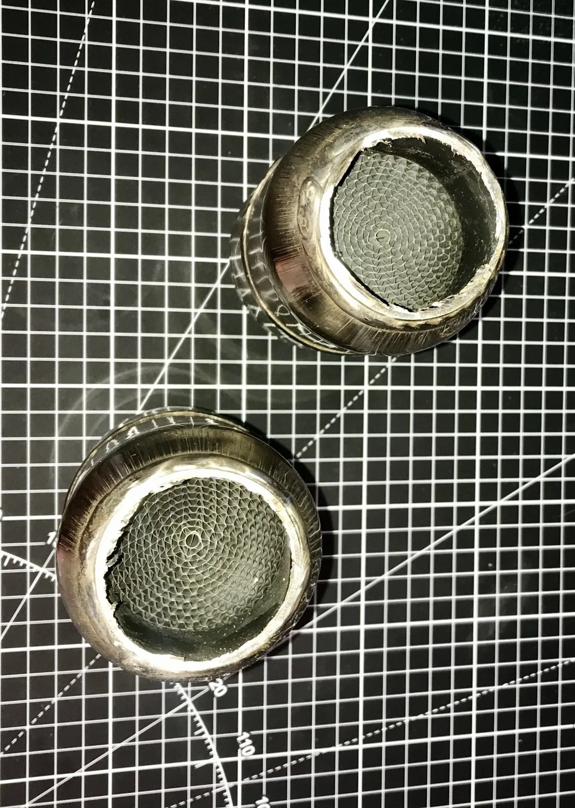 The other option is to approach your local motorcycle exhaust specialist Charlotte. Easy job to cut out the cat sections and weld in straight through sections. The cats - not insubstantial, weighty lumps of metal as you can see! Assuming your bike has the same cats.