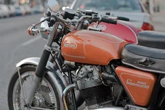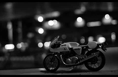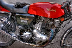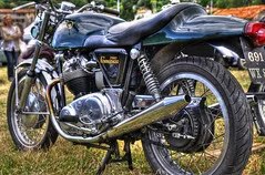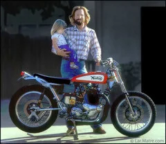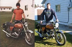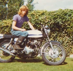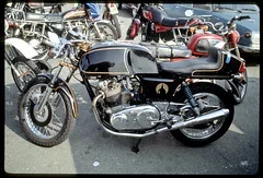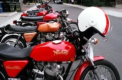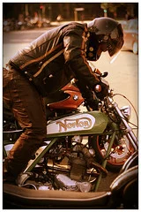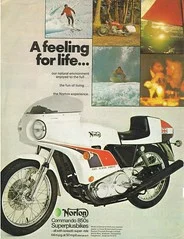 Half way down there is a green & cream Commando being kickstarted. This bike was featured in one of the mags & I have to say I carried it with me for months. A street ride. Lighter narrower usable. Loved it.