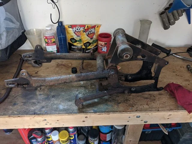 It's at this point that I get a clue as to why this bike was laid up. Everything on the engine moves except for the cylinder. I suspect the piston rings corroded to the cylinders after the bike sat for the past 30+ years. However, nothing on the gearbox will budge. That's where I left it for the night.