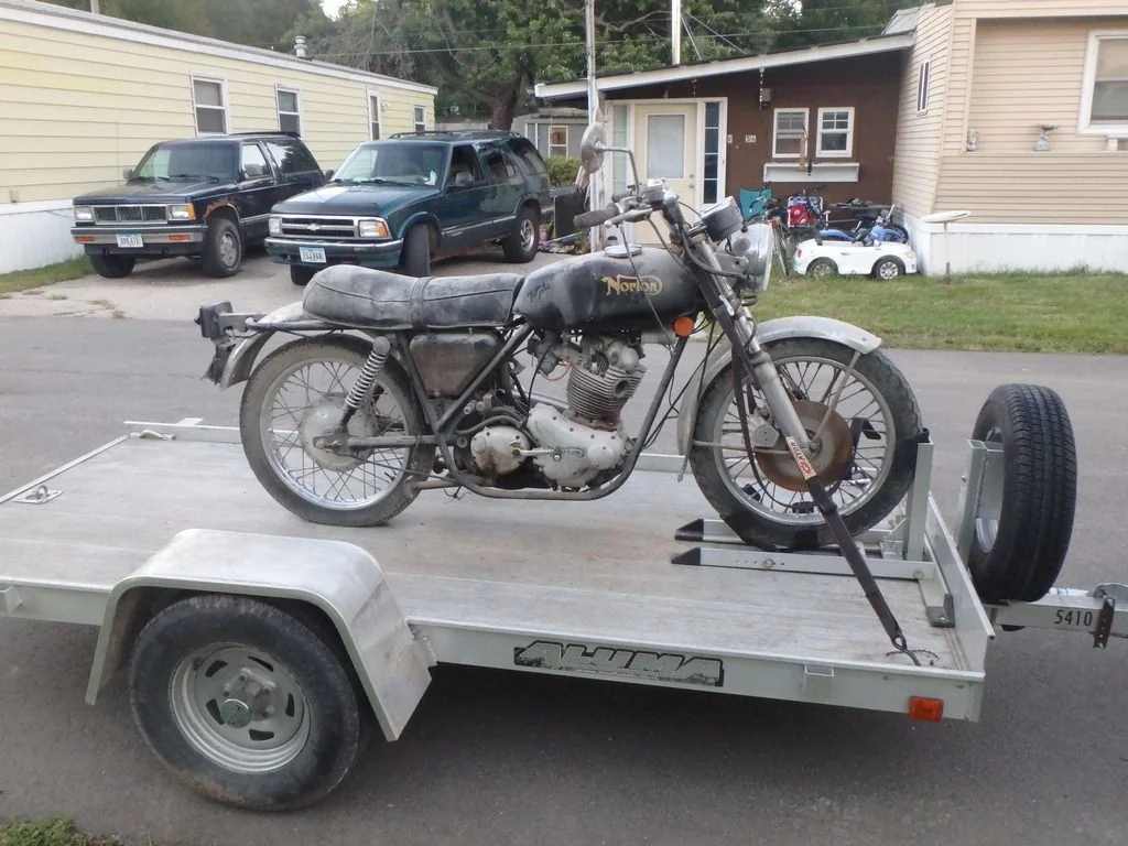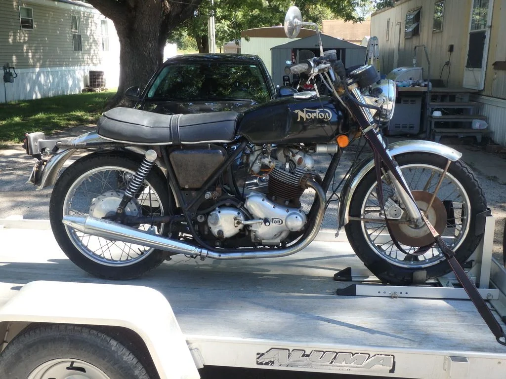 Back in the 80's my best friend had a 1974 850 Commando & I had a 1969 Triumph. Unfortunately he passed mid 90's & his brother inherited.the bike. Well now just a couple days ago he contacted me & said come get it. He said it had fallen over in the shed & was frozen in a puddle of ice & had to be chipped out. He said he had removed some pieces & was over his head so just left it tucked away. He said he has all the parts. I was pretty worried what it would look like after that story. Well not to bad considering. Even the exhaust looks good. Ran a bore scope down the spark plug hole & all we could see was a spider web. So all is looking promising. Gas tank is full of black powder & the tail light lens is gone.
