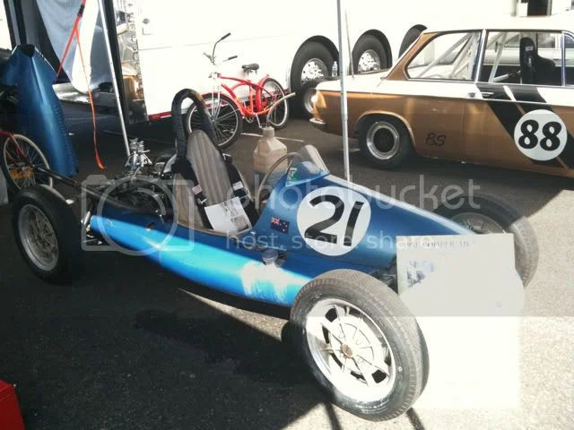 At the same time as the car show was vintage car racing. Although there were plenty of exotic and erotic cars I will only share this one as it has bike roots. It's an old Cooper with a JAP motor. Very cool. Who cares about the Ferraris and Lolas and Lotus and well, you get the picture...