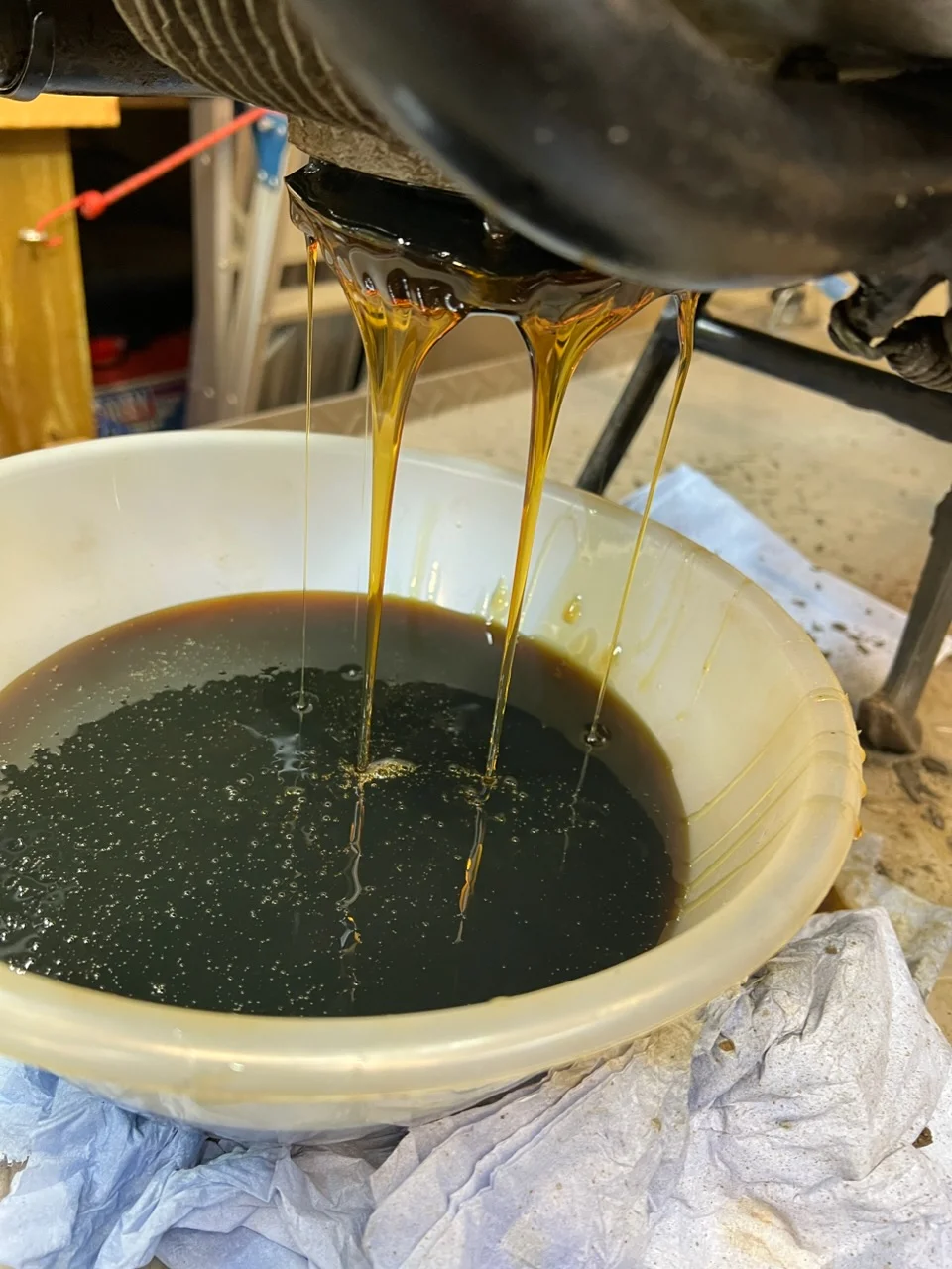 While cleaning up under the sump in readiness of replacing it along with new gaskets I cleaned off some stray floor paint that had been applied to the centrestand. Look what I found next - a lovely crack waiting to cause a problem. That‘ll have to wait until I can get it off the ramp and on the sidestand. Then clean, weld, repaint, refit.