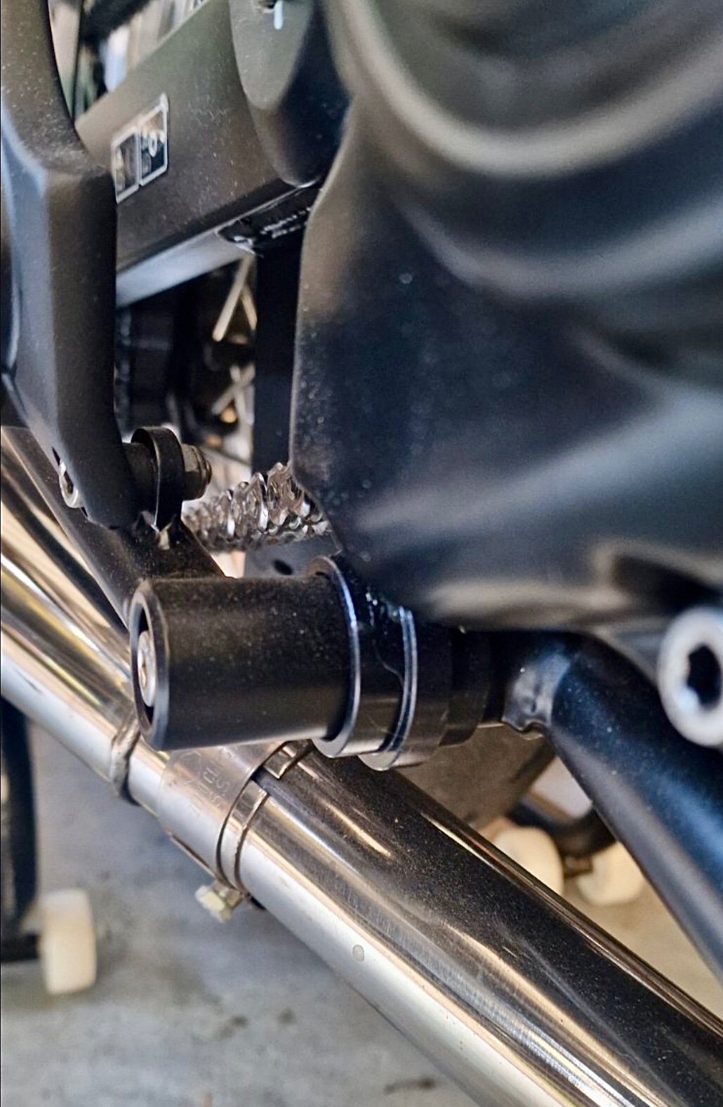 - The hand built nature of the frame extentions mean they may differ slightly in spec; I had to flex mine (2-3mm) in order to align mounting holes. They are braced by the footpeg backing plates.
