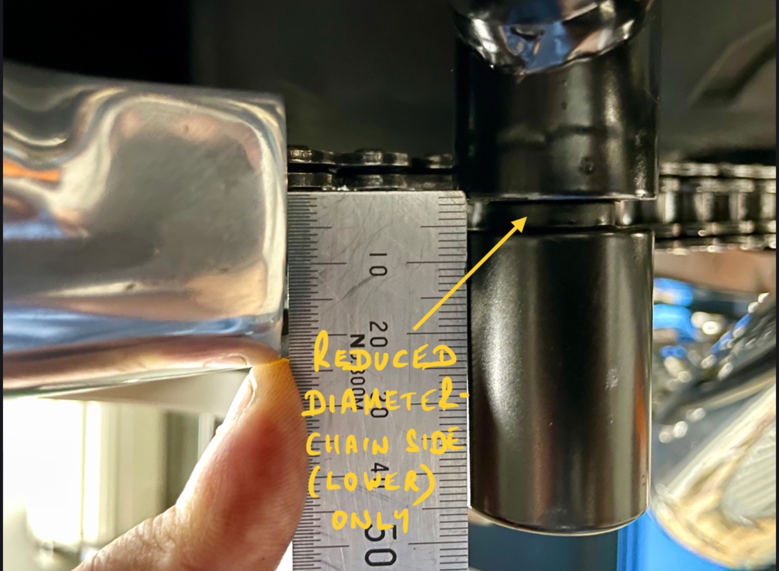 - The chain side lower mounting boss has a 5mm reduced diameter internal face. I made a spacer as a temporary measure.