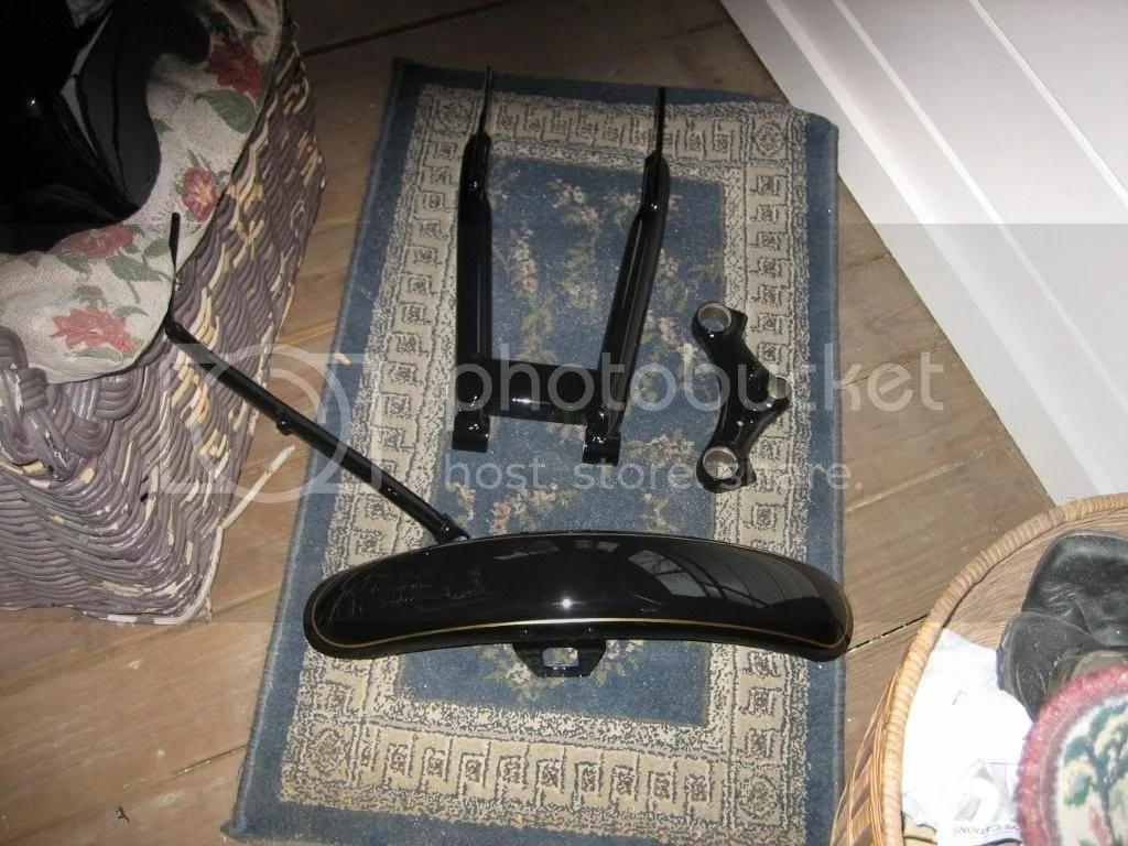 As my bike sits, I am thinking of pulling the front fender off and waiting till the end to bolt it on. I am thinking I might damage it and this could go on last, Same for the rear. I know what your talking about when it comes to money and not scratching it, I have spent a little time myself trying to figure the safest ways of doing things. I have so far been real lucky and no damage, (knockin on head). Just take your time and think it through first that way works well for me. I put the trans in the cradle first and then bolted the motor to the cradle, Then me and the wife lowered the frame over the assembly and put the stud thru the rear iso. I had a few short 2x4's that I used under it to get the right height for the frame. Next the front iso bolted to the motor and frame, At this point it was easy to get upright and onto a stand. (Not too heavy yet) Then I did the swingarm, Shocks, Triple tree, forks and so on. I also wanted a rolling piece so this was the way that worked for me. I don't take any credit for this method as I think it was here that someone suggested it. I wrapped in canvas as much of the frame as possible to avoid dings or scratches. Just go slow, It works. Chuck.