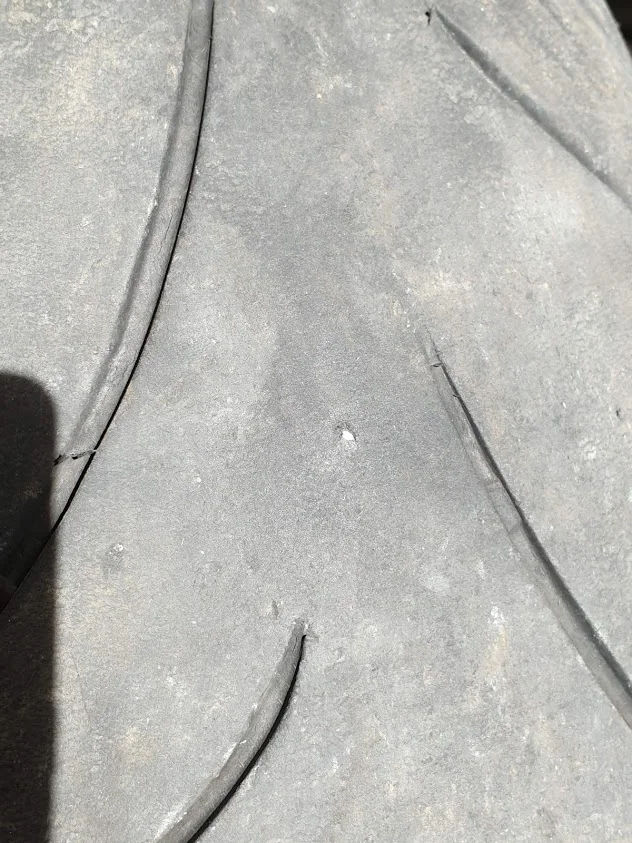 Yes, at last a proper breakdown - back tyre was flat. Despite having a bag loaded down with all manner of engine tinkering tools, I didn't have the means to repair it. The consensus was the nail in the tyre you can see in this picture.