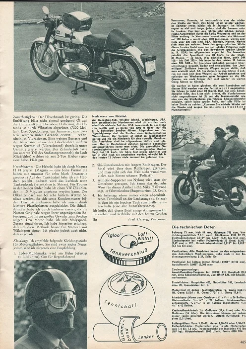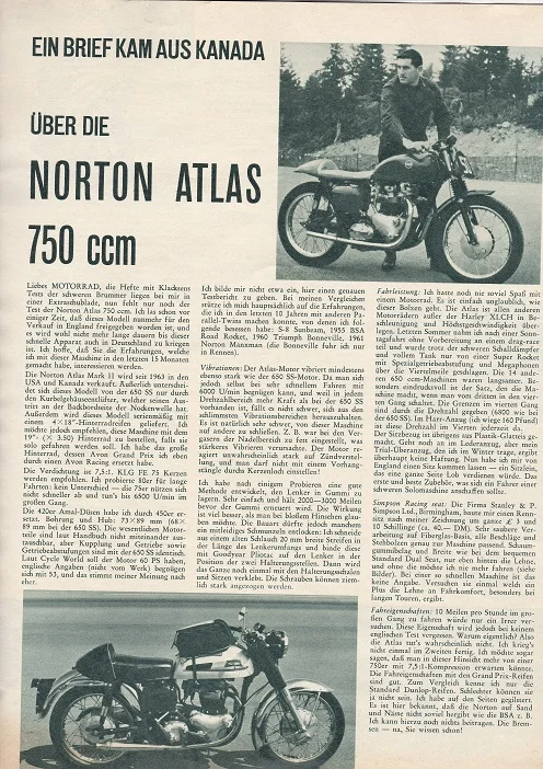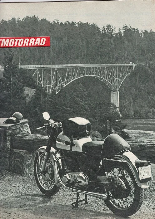 a nice article from Motorrad 1964 which will interest those of you in Vancouver or NW US. The pictures were taken at Deception Pass, Whidby Island, Washington. The author was a German émigré in Vancouver, who had owned his Atlas for 15 months, had read the model was about to be launched in Germany and had written to Motorrad to share his experiences. ( that is him with the T120 racer). His last bike had been a 1961 Manxman.