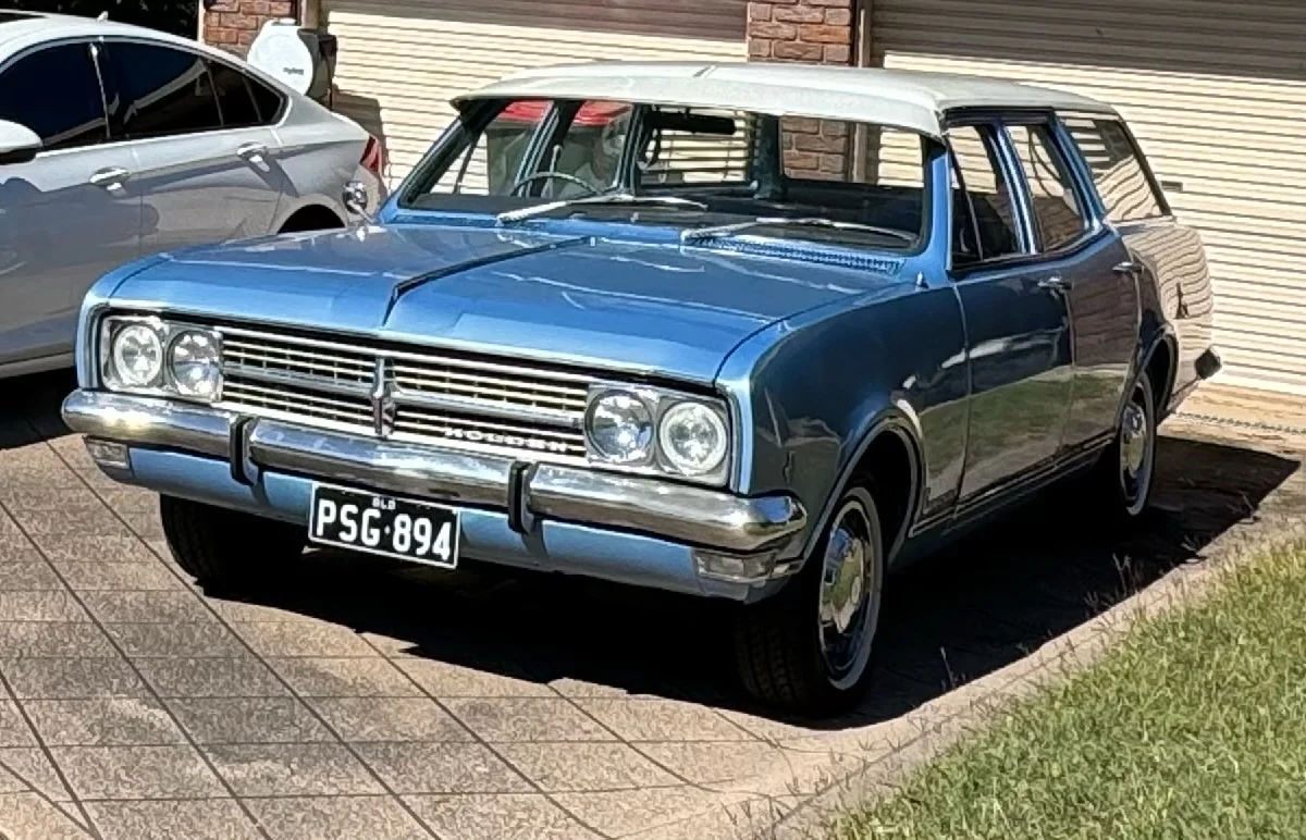 For Aussies it's a 1968 HK Holden Premier wagon - 186 & three on the tree (6 cyl about 3 litres and manual trans on the steering column)