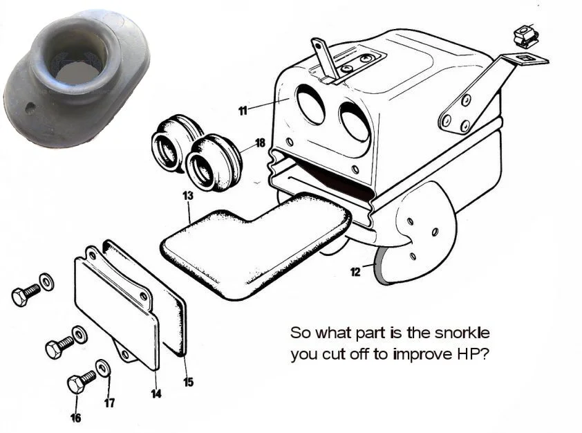 Neither of those are a snorkel though...Even the AN parts break down page calls it a 'Air-intake venturi which normally is a device to increase velocity in that case or worse a removable restrictor to quiet the inlet noise at testing.