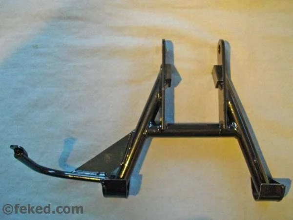 Ha another designed to decay item on Commandos. My Trixie Combat stand that mounts on cradle came with RH kisk side leg bent forward so bike listed low on RH - almost like a R side stand lean. To straighten up some I used 6 ft breaker bar wedge between lags with bike on stand and a foot on a tire rim then brute froced it mostly level again, and again, and agian and maybe once more again last season. I do not start on center stand and only use it in garage with care to get bike up on it, so another mystery why its so soft to bend with just time. I've tried the beating method and ok to fine tune some but not more an inch or so. My 1st Combat center stand fractured within months of my time on it, so removed and missed out on what others deal with until Trixie. Trixies has held stable last couple seasons so maybe I've finally work hardened it enough to stiffen up, but course moves it closer to fracture time with the clanking beatings it gets on rough sections. Not a bad idea to have a shallow rib/gusset tacked on tubes when in the mostly straight stage of their existence. I don't suggest heat to bend as leaves soft it lasts even less long. It ain't rocket science and doing it on bike prevents the re-tweaks from skewing the cradle mount alignment, any more than might be already.