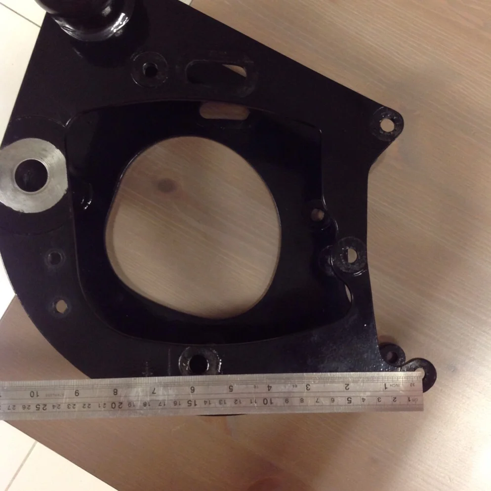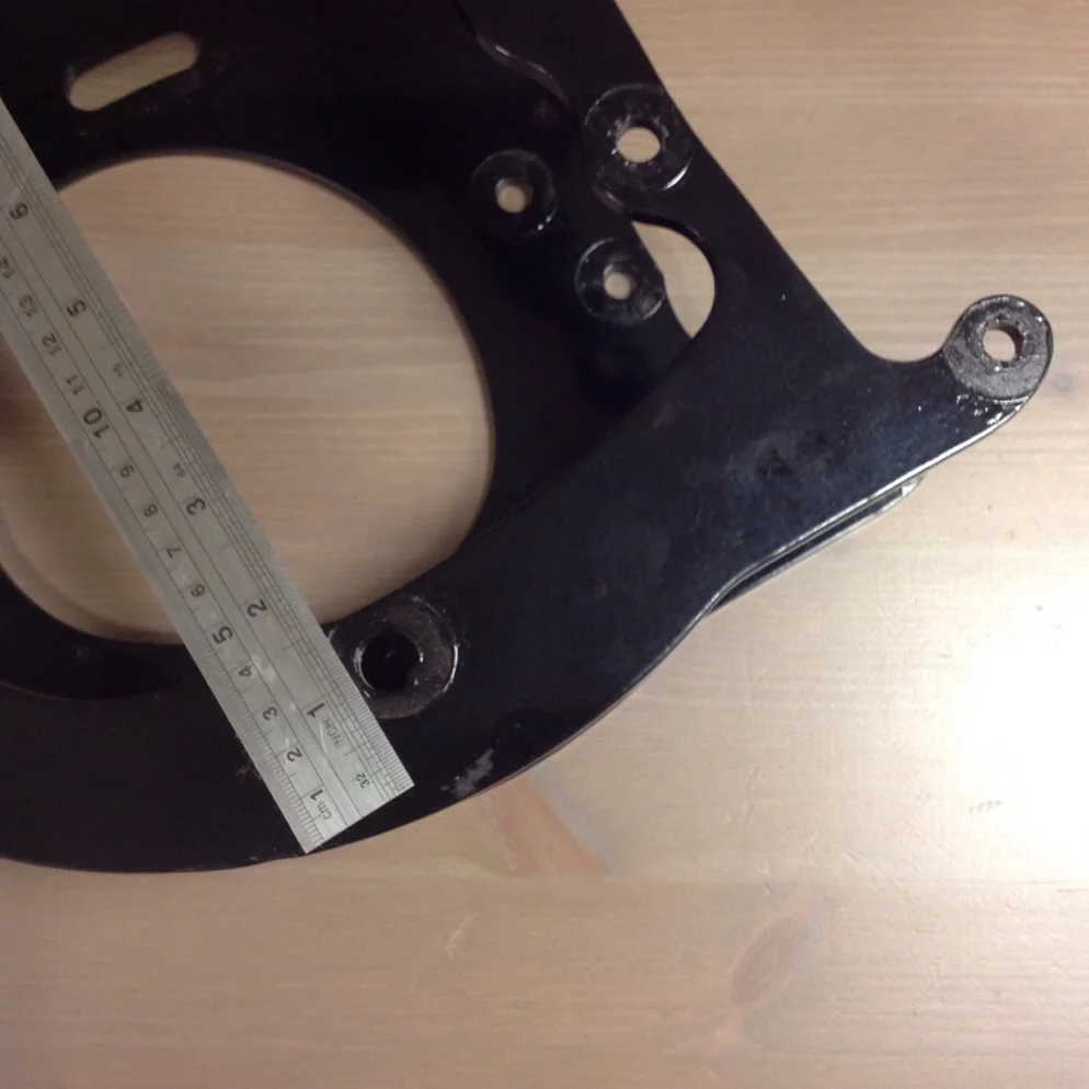 Can anyone help me out with the hole positions for the late model centre stand in the rear engine cradle. I figure the best way to locate it is the distance from the forward lower crankcase mount hole to the centre stand hole and the distance from the lower edge of the cradle to the stand hole. Also need to know where the spring attach hole is from the same datums.