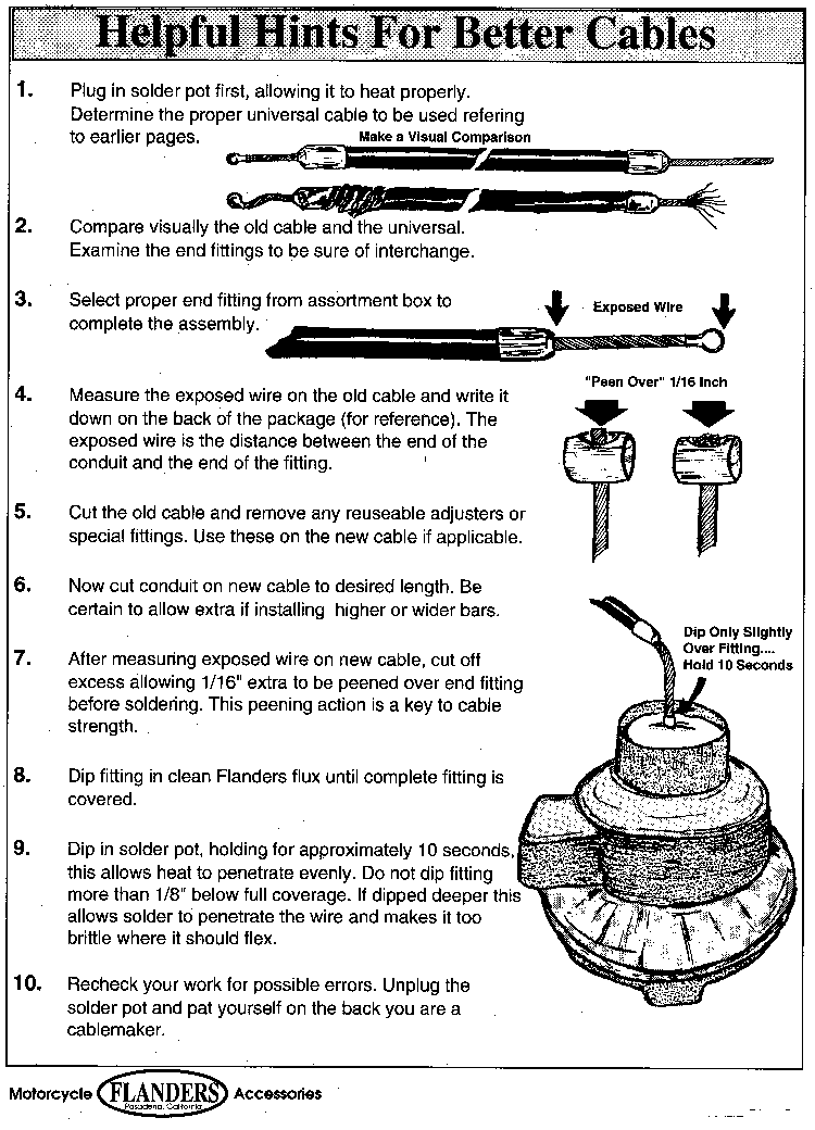 I need to shorten an inner throtle cable & not having much success. The solder won't take when I reposition the nipple.