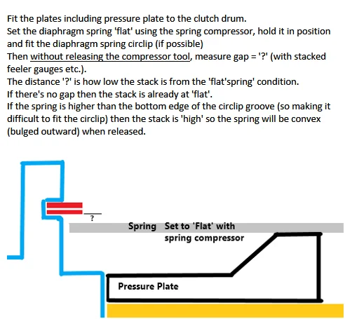 The only other option is to measure from the TOP of the circlip groove and subtract the circlip thickness and subtract the diaphragm thickness to get a slightly more accurate clutch basket height