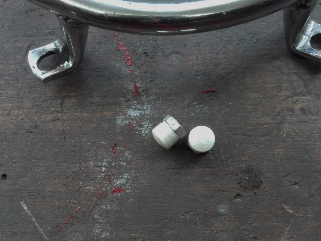 Later I bought the last pairs of original white cap nuts from Rabers, now out of business.