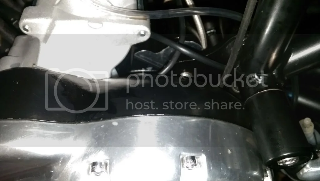 had to be addressed, yet dragged on for years with little or no communication from the factory. Is the lack of a transmission vent the next elephant in the room? All they need to do is acknowledge the problem and say they're working on it with the odd update and everyone would be happy. As easy as that is to say, if the company culture is not there, it just won't happen. Norton has got away with a lot of issues because it's 'brand Norton', but there's only so much mileage you can squeeze from the nostalgia many of its customers have. Looking forward to Norton's new generation of bikes most of its potential market weren't even born when Norton was around and these bikes will have to stand on their own merits. Back to the elephant... Now the oil has gone as a result of the airbox fix the more subtle leak coming from the transmission case is showing....