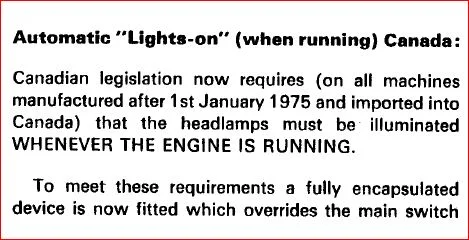 The battery wouldn't feed power to the headlight, the headlight would get it's power from the alternator through the Canadian model assimilator 06-6392 and would be dim or bright depending on how high the engine was revving.