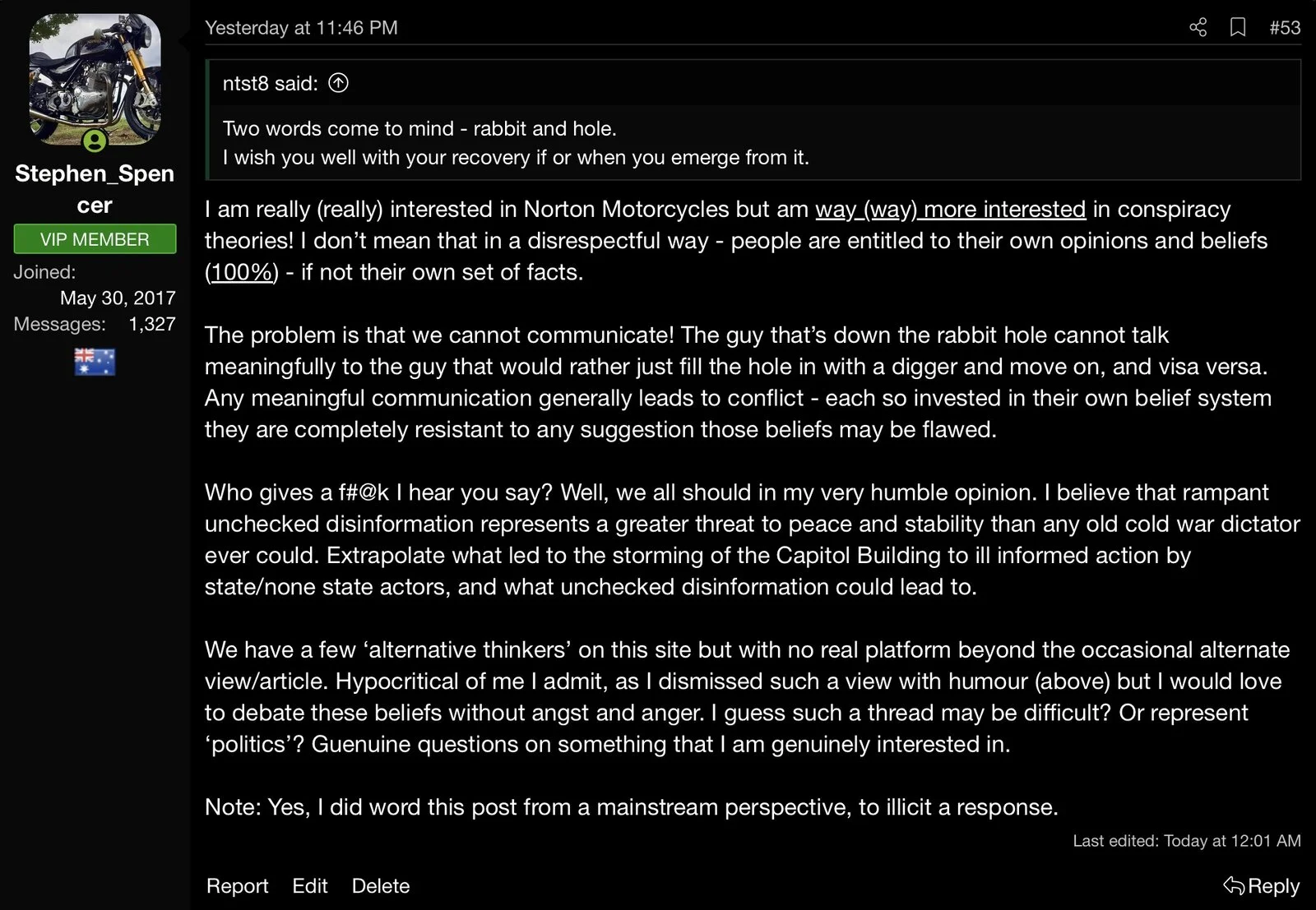 As you said… it’s a conversation in a pub…I also directly quoted/questioned the poster ...not you