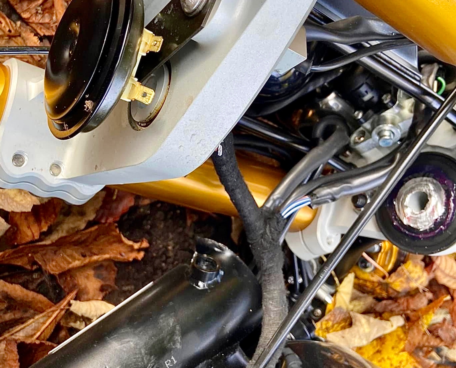 Not gonna stop a couple of big dudes lifting your bike into a white van but hey, if it slows the opportunist asshole down that’s gotta be a good thing. Steering lock and one of these may even see him move on to an easier prospect. Doesn’t look too bad in gold against the forks.