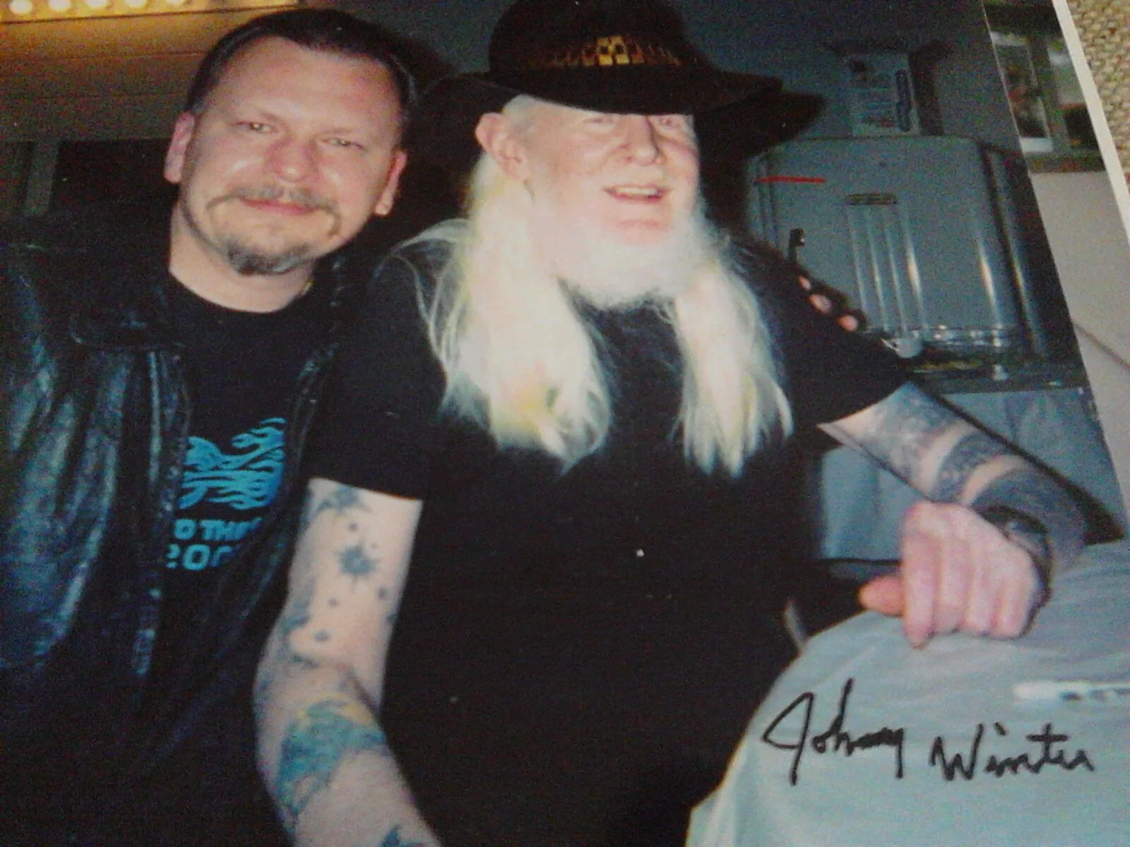 I've never seen Billy Strings live, but I have seen Marcus King about 4 times. First time in 2017 he was driving with the band in a Ford Econoline pulling a MC trailer full of gear. Asbury Park, NJ. Here's another one of Marcus playing with Billy Strings. And here's the Marcus King Band... Awesome. Here's a pic of Marcus autographing my leather right next to Johnny Winter. They all like to sign next to Johnny or Gregg Allman.
