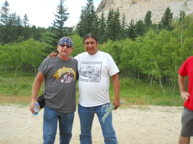 When I went to Sturgis in 2012, I met this dude at the Crazy Horse memorial. Chief Delbert "Black Fox" Powmani. He told me he was a direct descendant of Chief Crazy Horse and Sitting Bull. I asked him what he was doing here? He said he was gathering some sage for a ceremony. I said "Sage, what about the peyote"? Anyway I didn't know he was a musician too. Rock on Black Fox. First time I ever met real Indian's. Not the ones we have around here who own all the liquor stores, 7-11's, and gas stations.