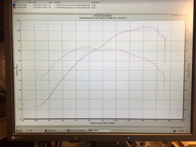 Exactly Ken, the numbers from my one dyno run on my Fullauto head at first engine build was fairly meaningless....it just allowed us to get the jetting closer before serious track runs, and to confirm it was in the expected ball park. I certainly had no previous figures to compare it with, and since I was just revving to 1500 below the revs I have now used, I have little evidence that I saw the full potential of it.
