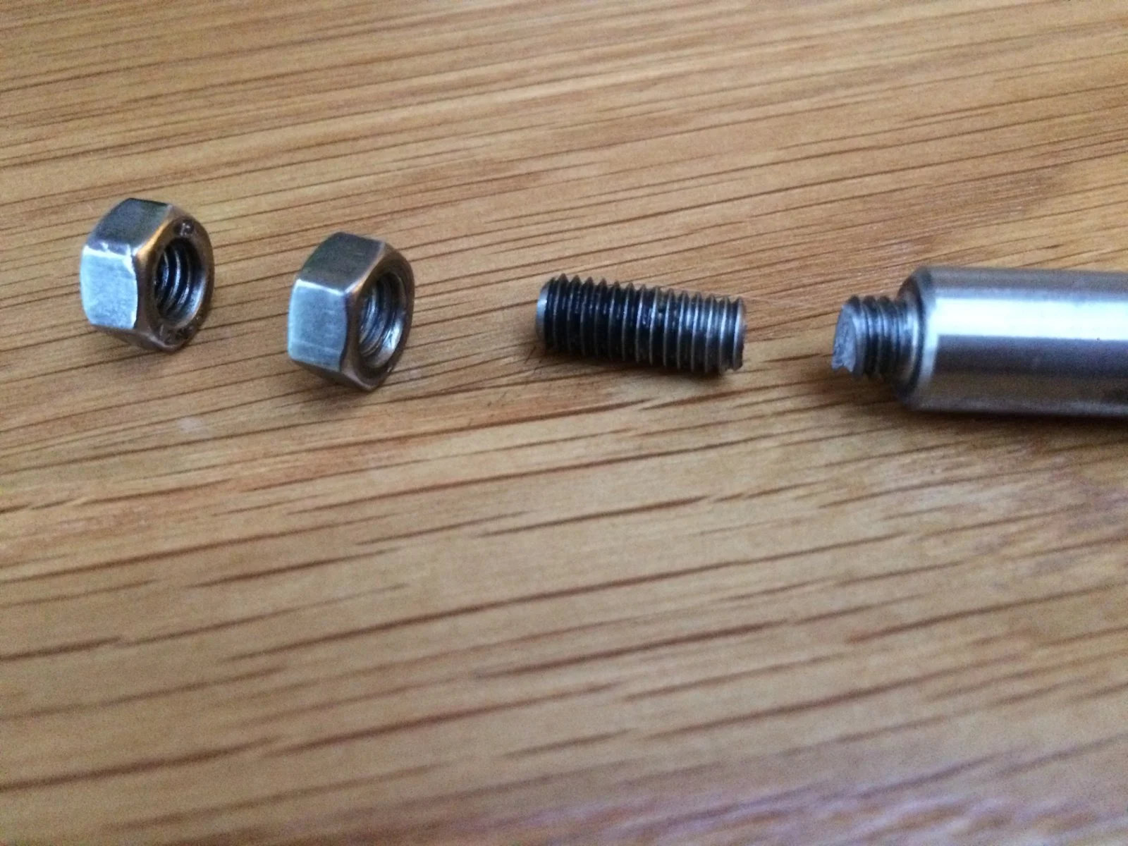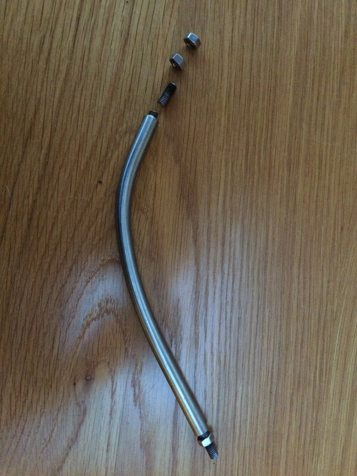 I would if Norton , keeping the beautiful stainless curved rod ,BUT thread it on the OD (outside) . Go to 8 mm ball joints and finish it for good this way. The rod is very pretty ! The rod should not be narrowed to 6mm but kept at full diameter , and 8mm ball joints.