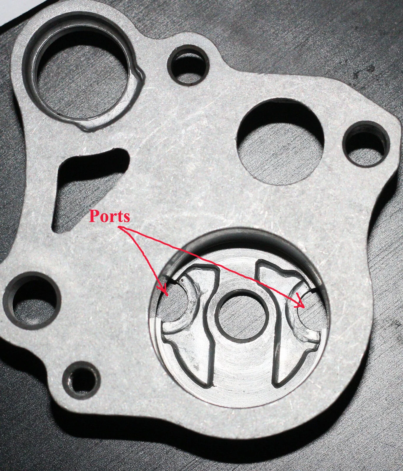Questions on gerotor pumps: trying to adapt a Honda pump to old britbike. Is it necessary to have the pockets around the ports on both ends of the pump covers? Only one end need have