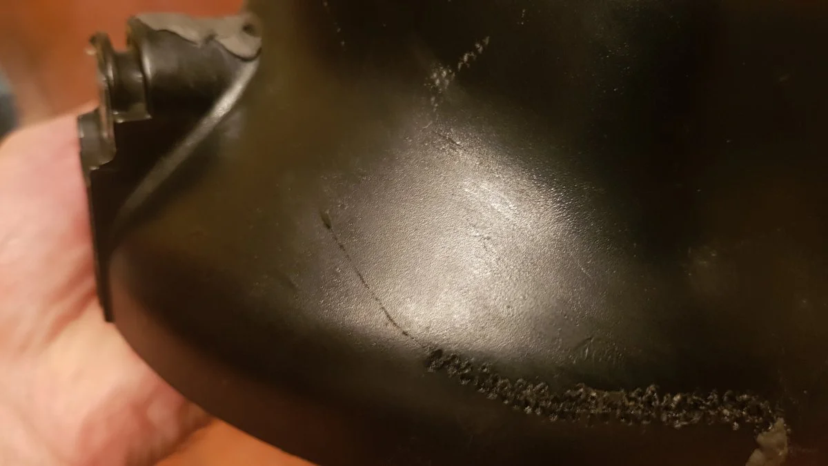 The plastic bucket around the rear of the retaining srews, had disintegrated, (with a lot of small pieces of plastic), leaving no place for supergluing in a steel/ stainless washer, and a big hole where rain could ingress
